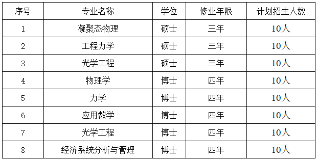 按照《中外合作办学条例》及其实施办法,3个新增硕士联合培养专业分别为:凝聚态物理、工程力学、光学工程;5个新增博士联合培养专业分别为:物理学、力学、应用数学、光学工程、经济系统分析与管理(详见下表)。